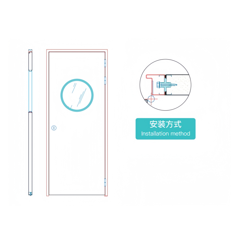 This clean door features multiple opening options—single left/right, double internal/external openings—with optional observation windows. Suitable for color steel plates, civil walls, and light steel keel structures, it includes tightly installed sealing strips that provide space division, noise reduction, dust prevention, insulation, windproofing, odor isolation, and environmental hygiene. Commonly used in purification projects within pharmaceutical, food, cosmetics, and electronics industries.