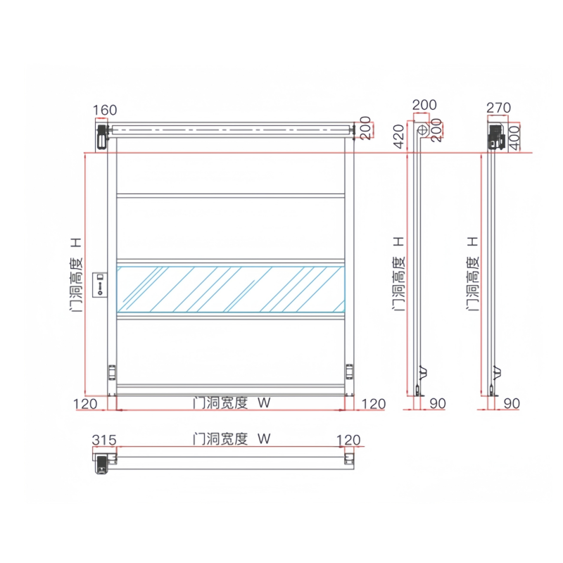 - It has certain wind resistance performance. it mainly uses PVC material to make thecurtain fabric, which has good flexibility, wear resistance and anti-aging performance.In terms of running speed, its opening and closing speed is very fast, usually adjustableat 0.6 to 1.5 meters per second, which greatly improves the passage efhciency.