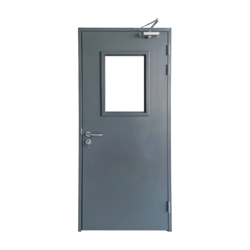 The inner filling is high-quality foamed perlite door core board with a temperature resistance of over 1200℃, and the surface is treated with powder coating, which can meet the requirements of fire resistance, integrity and heat insulation