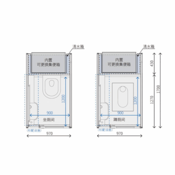 - Note:Optional auxiliary heating and thermal insulation armor, with dimensions including armor: 1700mm (L) × 970mm (W) × 2300mm (H)