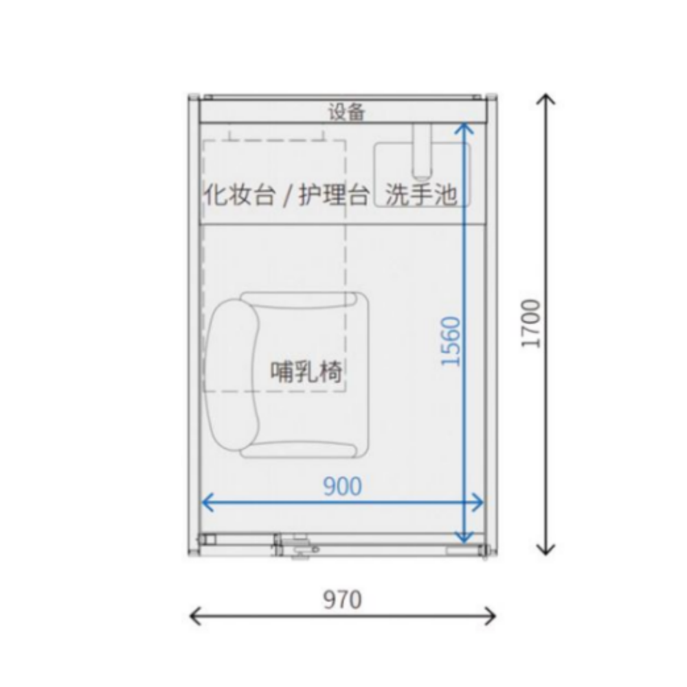 External Dimensions: 1700mm (L) × 970mm (W) × 2300mm (H)